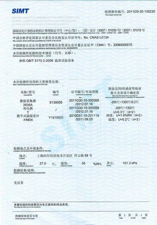 >>高低溫交變?cè)囼?yàn)箱檢測(cè)報(bào)告-上海計(jì)量院-福田雷沃