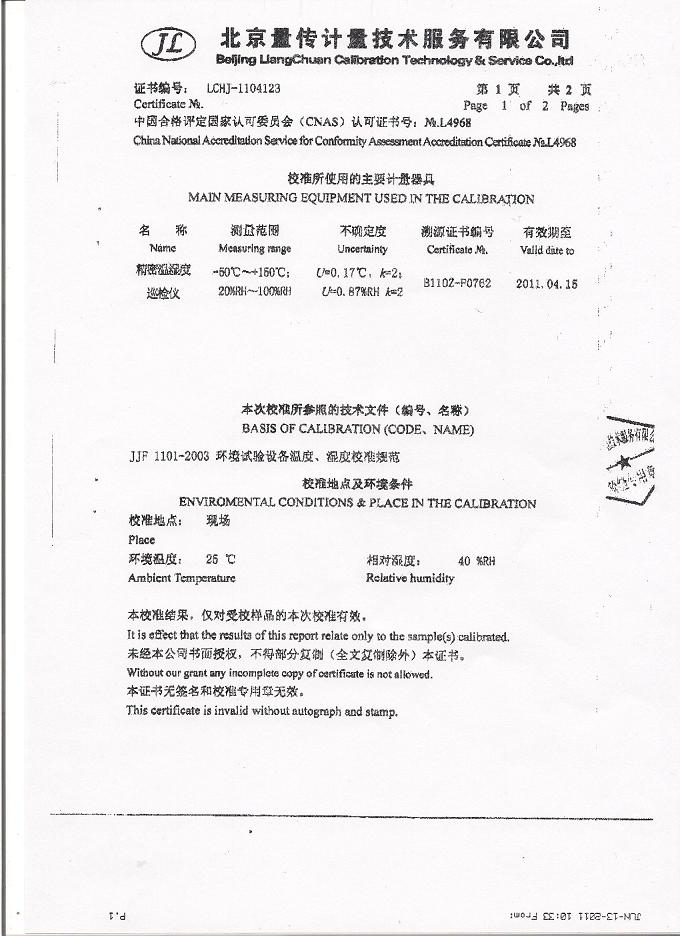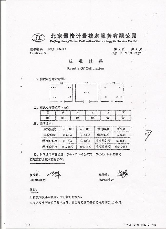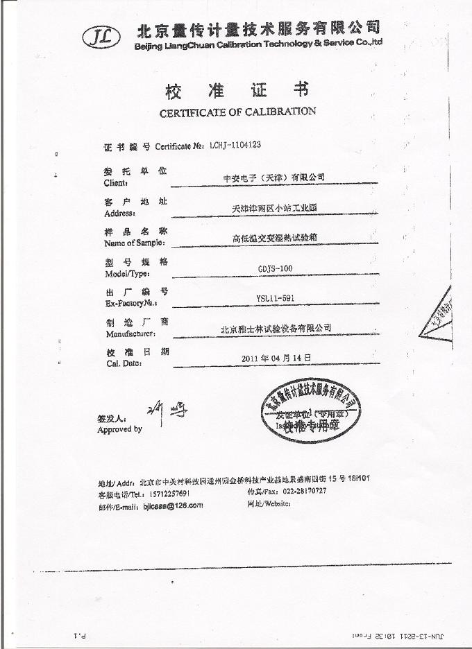 高低溫交變濕熱試驗(yàn)箱校準(zhǔn)證書-北京量傳計(jì)量-中安電子