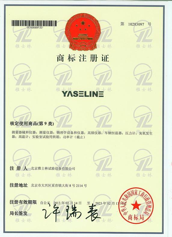 近日,北京雅士林試驗(yàn)設(shè)備有限公司(以下簡稱“雅士林儀器”)注冊(cè)的“YASELINE”英文商標(biāo),獲得國家工商行政管理總局商標(biāo)局注冊(cè)通過。此次注冊(cè)通過的“YASELINE”商標(biāo)為雅士林儀器近年來全力打造高端試驗(yàn)箱品牌。