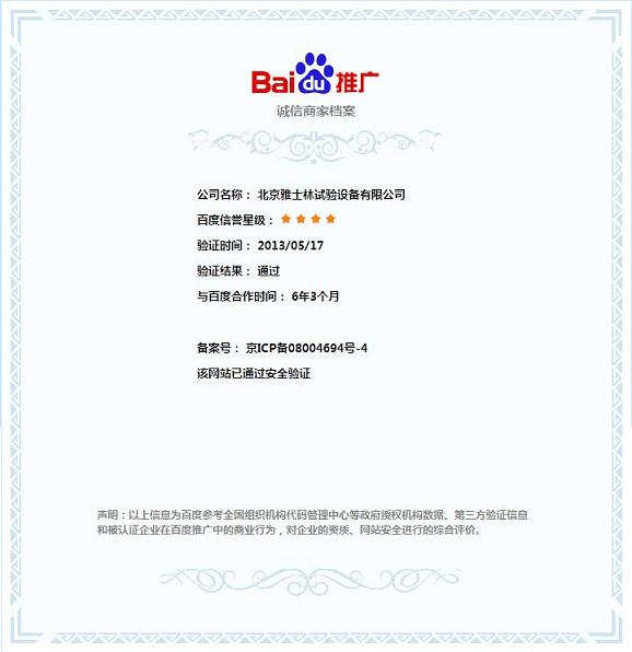 >>雅士林儀器榮膺百度誠(chéng)信商家認(rèn)證