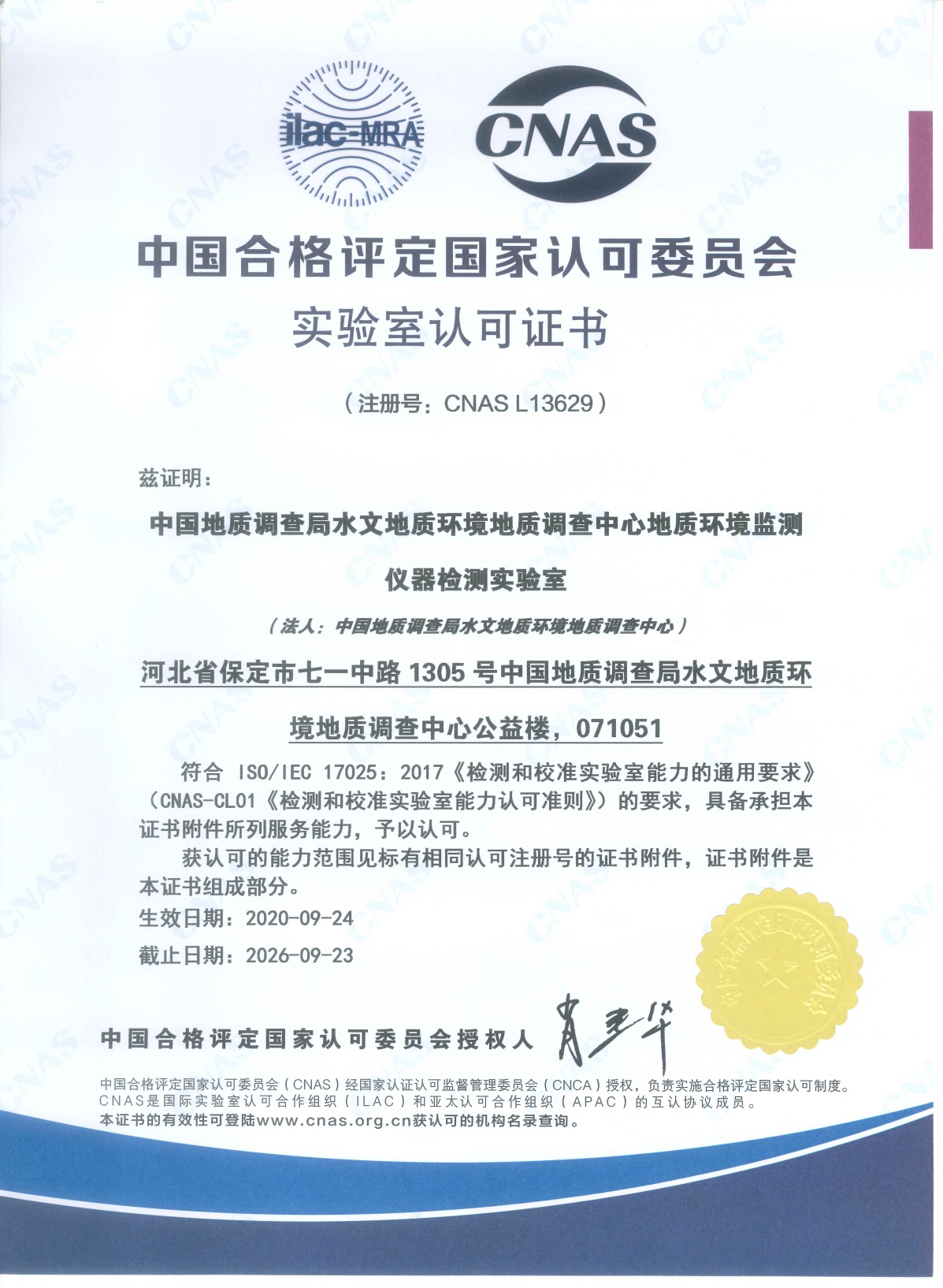 熱烈祝賀自然資源部中國(guó)地質(zhì)調(diào)查局水文地質(zhì)環(huán)境地質(zhì)調(diào)查中心地質(zhì)環(huán)境監(jiān)測(cè)儀器檢測(cè)實(shí)驗(yàn)室順利通過(guò)CNAS現(xiàn)場(chǎng)評(píng)審,并正式取得由中國(guó)合格評(píng)定國(guó)家認(rèn)可委員會(huì)(CNAS)頒發(fā)的實(shí)驗(yàn)室認(rèn)可證書(shū)。雅士林全體員工表示熱烈祝賀,同時(shí)也希望能夠加強(qiáng)和各個(gè)新老客戶(hù)之間的合作。